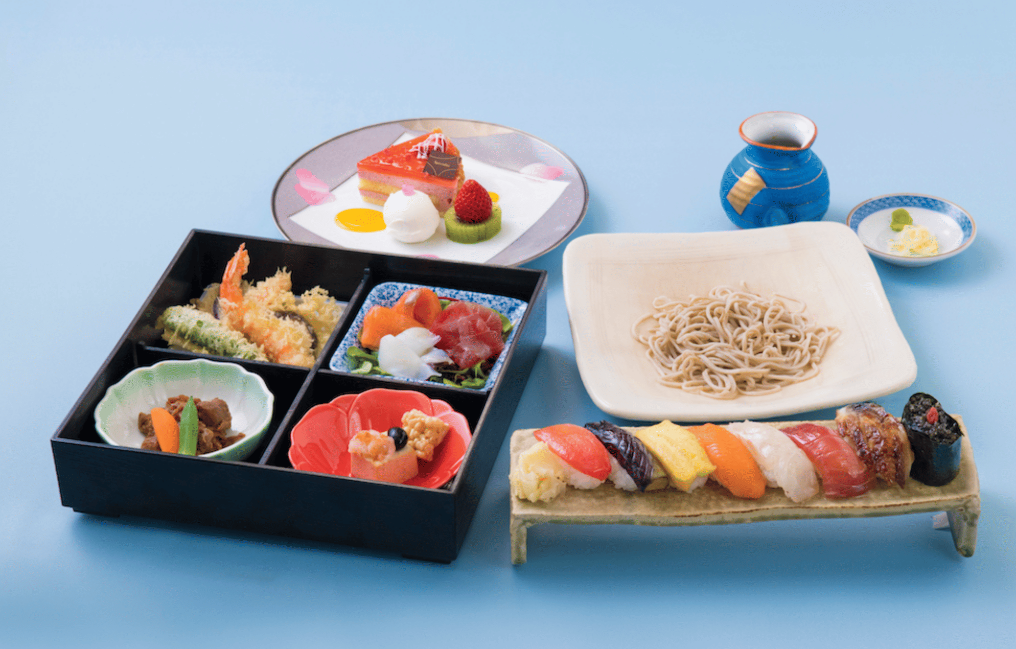 Delight your palate with a fancy full-course dinner expertly blending Japanese and Western-style dishes, prepared right onboard. Your exquisite meal typically includes an appetizer, soup, meat and fish entrées, a delicious dessert, and your choice of coffee or tea. Many dining rooms also feature live piano music, creating an atmosphere of cinematic elegance.