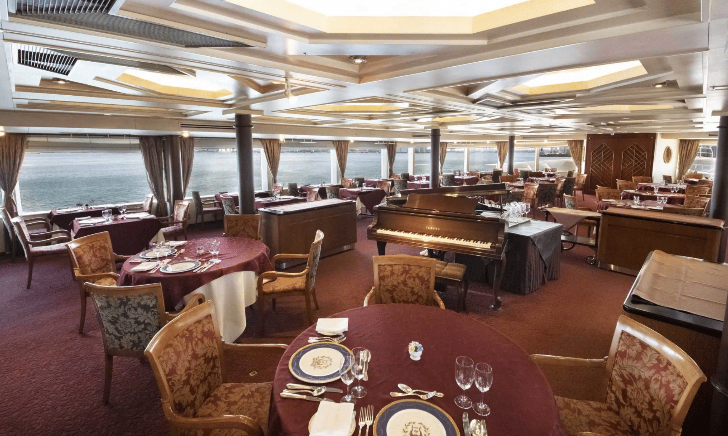 · Features: Full-course dinner (Japanese and Western styles), open observation decks, live piano music.
