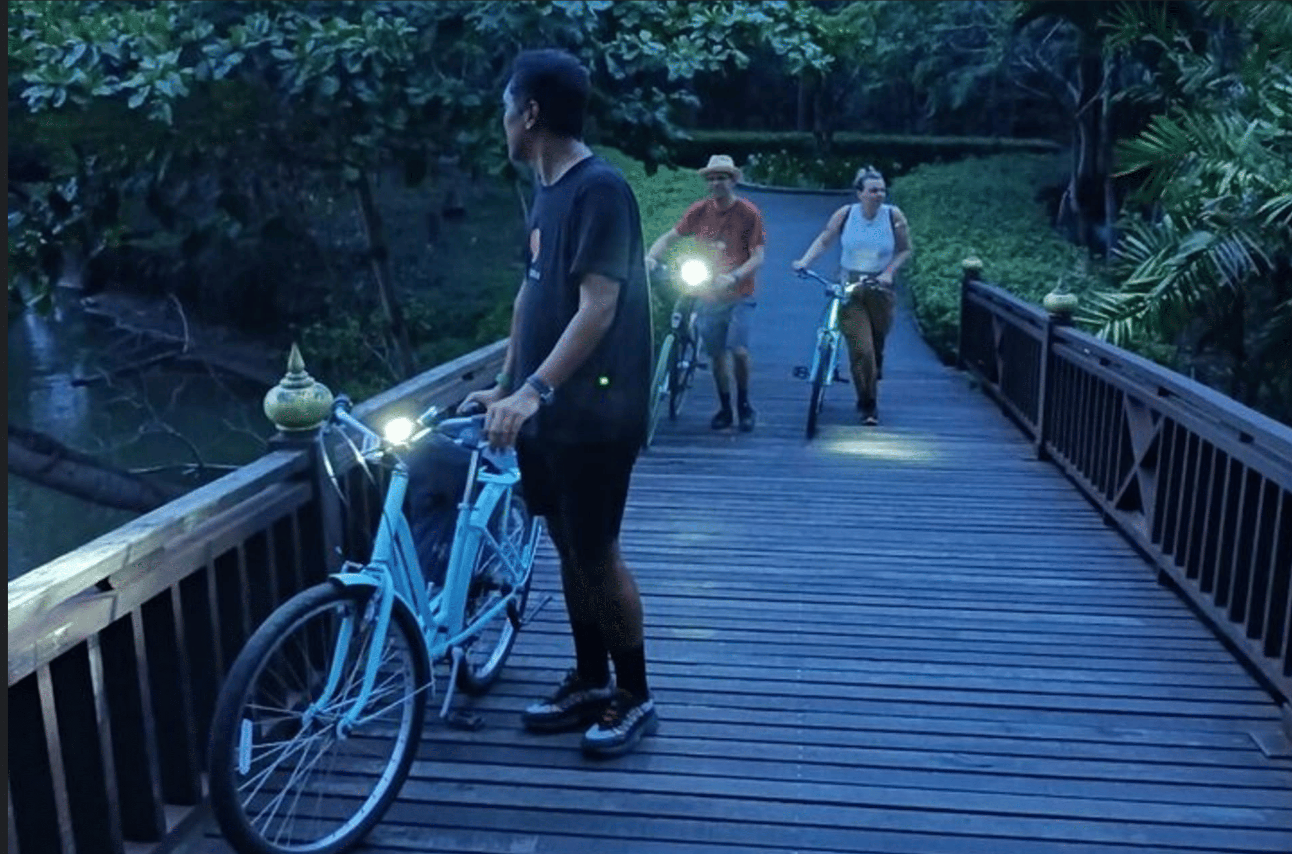 As you ride, your guide will provide fascinating insights into ancient Thai culture, pointing out unique traditions and sharing stories of the local communities. You'll traverse picturesque wooden bridges that connect serene villages and lead you to the magnificent Sri Nakhon Khuean Khan Park. Inside this beautiful park, you'll find a tranquil oasis, and for a truly stunning perspective, you'll make your way to the bird watch tower to soak in the stunning vistas of the surrounding greenery, with the distant Bangkok skyline providing a breathtaking backdrop.2 This tour is a perfect blend of adventure, cultural immersion, and natural beauty, offering an unforgettable and intimate glimpse into a side of Bangkok few visitors ever get to see.