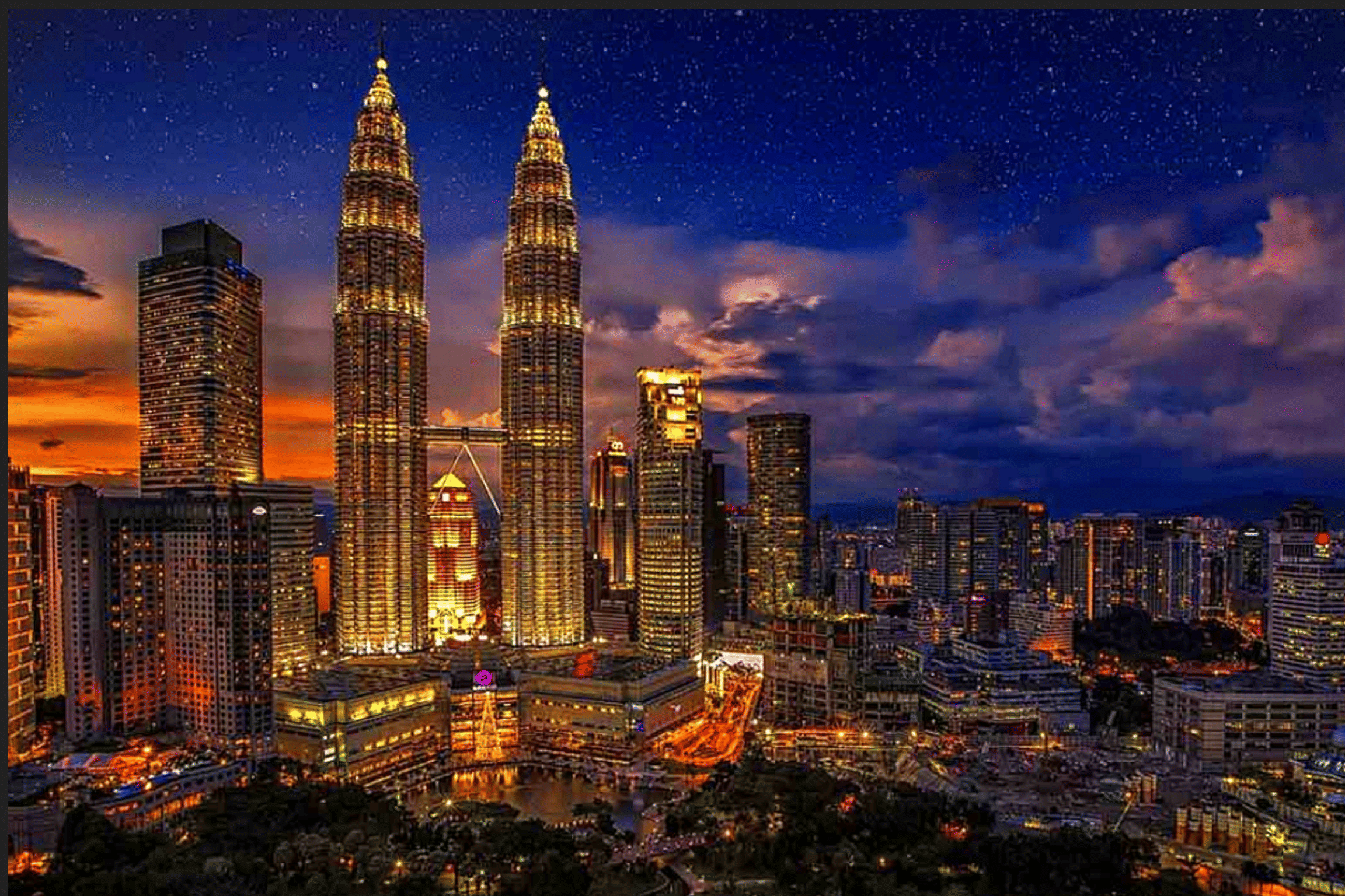 - Petronas Twin Towers: See the world’s tallest twin structures glowing against the night sky.