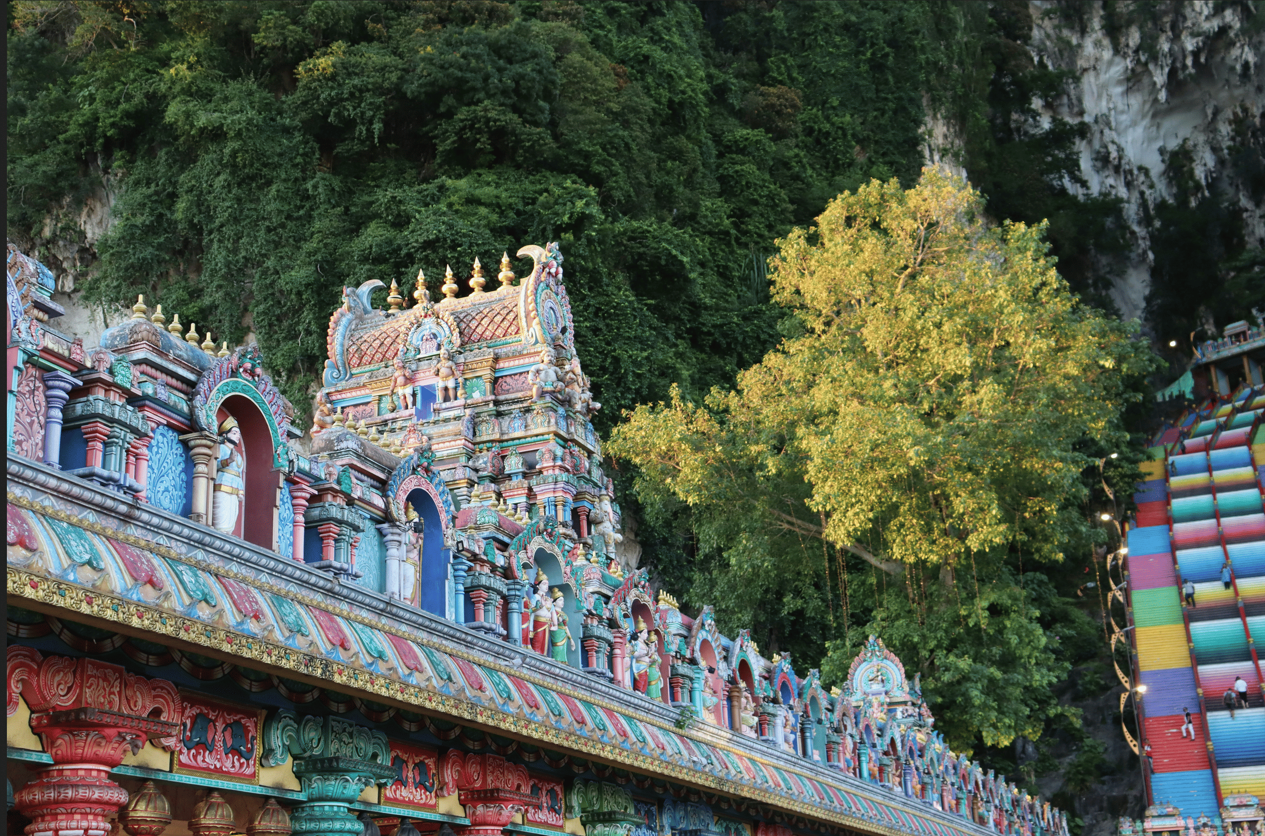 • Batu Caves: Climb the vibrant rainbow stairs and explore the ancient Hindu cave temples.