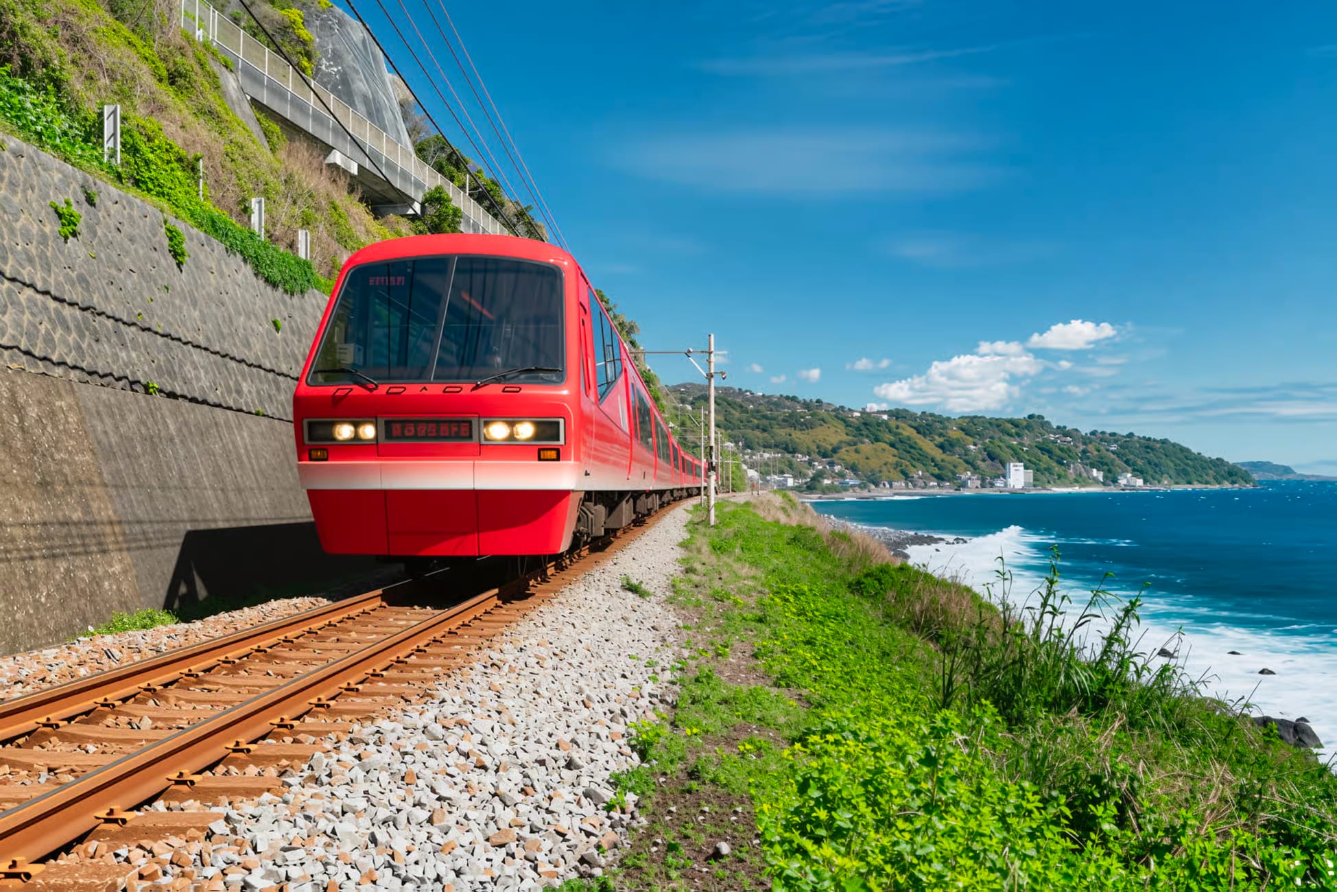 Scenic Train & Coastal Drama: The adventure continues aboard the Izu Sea Viewing Train Resort 21 (either the Black Ship or Golden Eye Sea Bream Train). This panoramic route winds along the cliffs of Izu’s east coast, where the Pacific Ocean outside your window transforms into a flowing sapphire. As you traverse the Golden Route section, passing through tunnels and over bridges, the views evoke a magical "sea railway fantasy"reminiscent of Spirited Away.